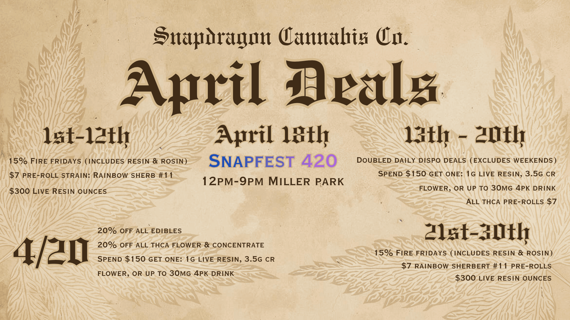 Snapdragon Cannabis Co. April Events & Deals (2026)